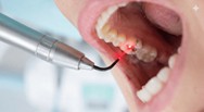 また、軟組織を除去や歯根の神経治療など幅広い治療に応用でき、麻酔注射やドリルを使うことなく、ほとんどの場合痛みが有りません。 |